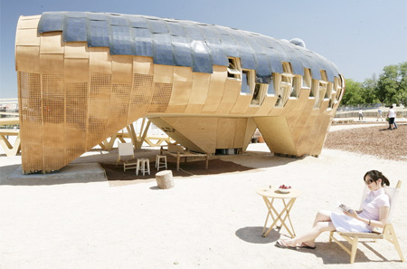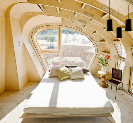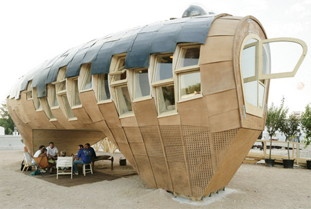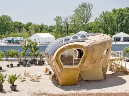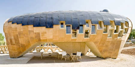 IAACがデザインしたのはまるで宇宙船のような形をしたソーラーハウス。このソーラーハウスはFab Lab(http://www.fablabhouse.com)といい、奇妙な形をした家となっています。