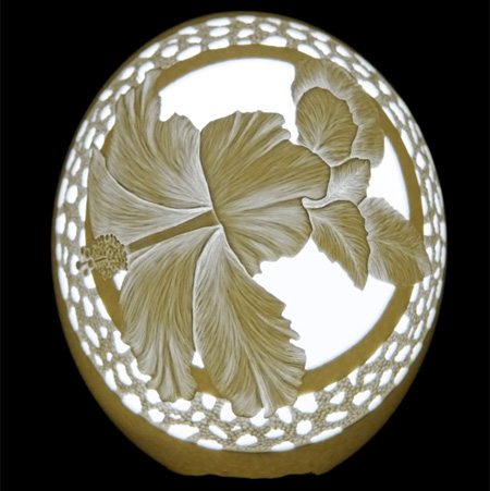 卵の殻をカービングしただけなのですが、ここまで来るともう芸術の域ですね。