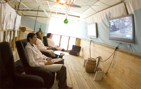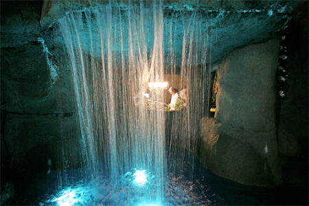 まずは洞窟ルーム。洞窟の壁を前にパソコンでパシャパシャと・・・なんだかとっても奇妙な光景。こんなの映画でしか見たことがありません。