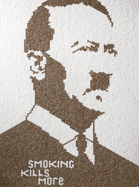 「Cigarettes Killed More」と書かれており、その後ろにはヒトラーの姿が・・・。