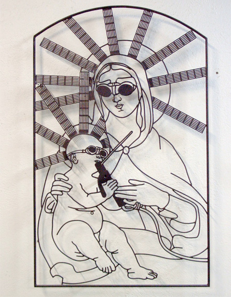 イエスキリストと聖母マリアがコミカルな形でワイヤーアートとして浮き上がっています。