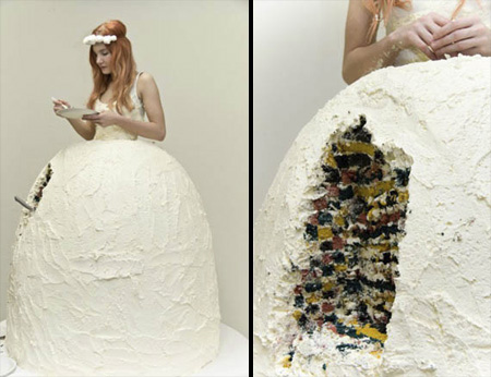 こちらはお腹がすいたらケーキをドレスを食べることが出来る、アンパンマン方式のドレス。もはやドレスではありませんね。