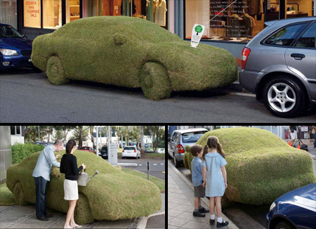 続いて車の全面が芝生に・・・という広告。