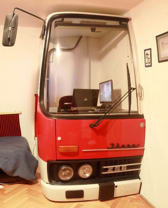 Ikarus製のものですが、バス好きでないひとにとっても自宅にこんなワーキングスペースがあったらいつまでも、その中で仕事をしてしまいそうな気がします。