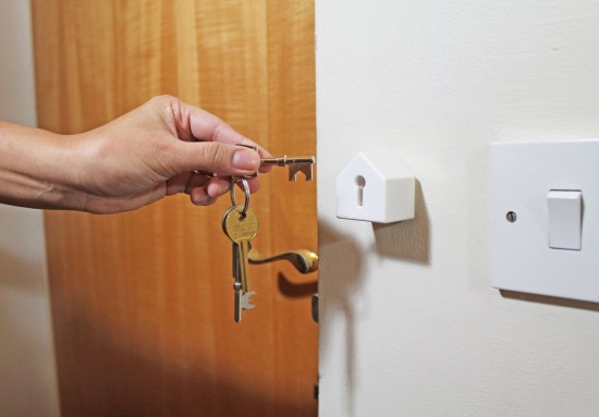 上の写真が今回紹介する、カギ穴に差し込むタイプのキーホルダー「Key and house-shaped keyholder」。