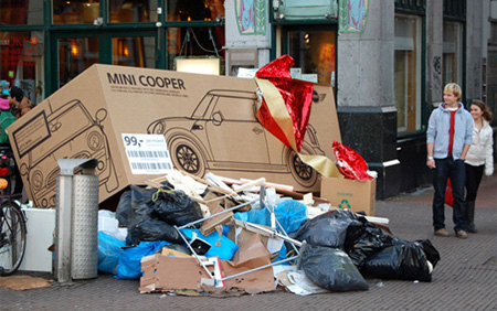 サンタさんからミニクーパーをプレゼントされて、翌日ゴミ箱に箱だけを捨ててしまったという演出。みたひとはびっくりですよね。動画も公開されていますので是非ご覧下さい。