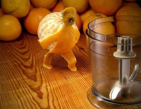 まずはこちらから。ミカンの皮をうまく利用してミカンを運ぶ人を形作っています。うまい具合に頭を形作っているのがミソですね。