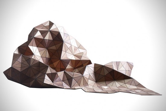 上の写真が「Wooden Carpet」。木材の色調も見事ですが、三角形と四角形の木が生み出す独特な立体的な折れ模様もものすごく刺激的。