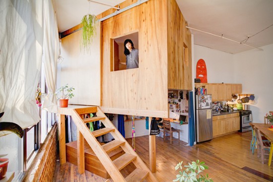 これは建築家Terri Chiao氏がブルックリンの部屋につくったお部屋。Terri Chiao氏は部屋の中にキャビンや、ツリーハウス風の部屋をつくってしまいました。