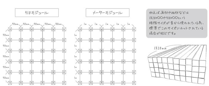 つまりこの910mmという寸法をうまく使えば材料や手間の無駄がなくなるため質を落とすことなくコストを下げることが可能になります。
