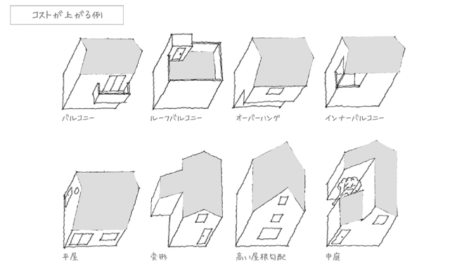 コストが上がる例 図:コンセプトハウスの設計理念 | Vivienda Style | Simple Inc.