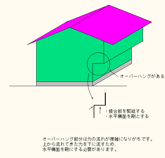 1:地震や台風などの横方向からの力に耐える。