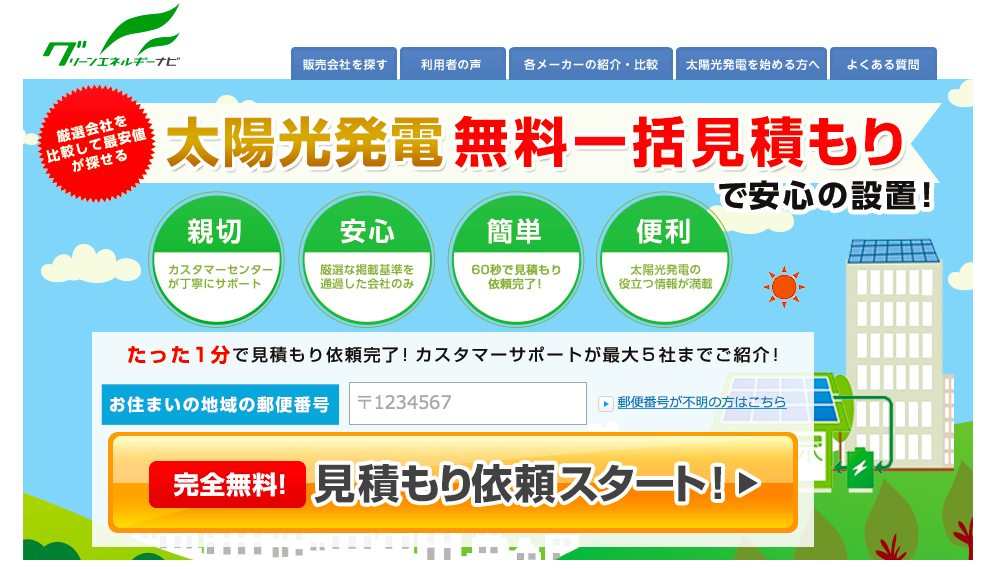 太陽光発電システムを設置しようと考えた時に利便性にすぐれ、ぜひとも利用したいのが前回紹介した無料一括見積もりサイトです。