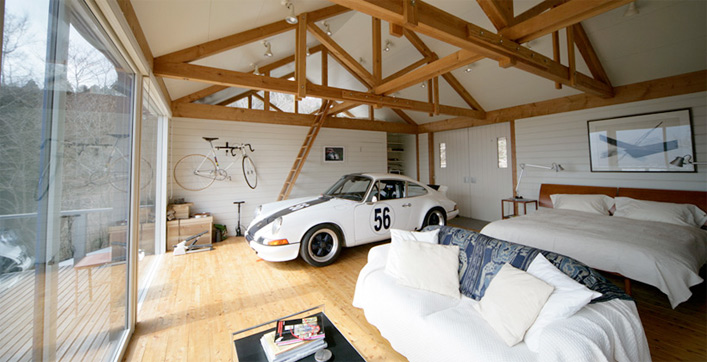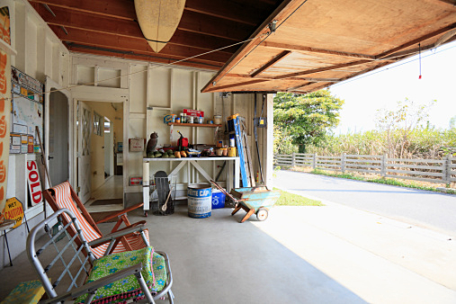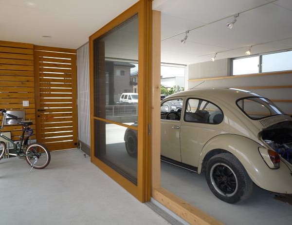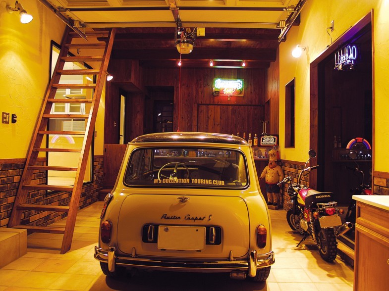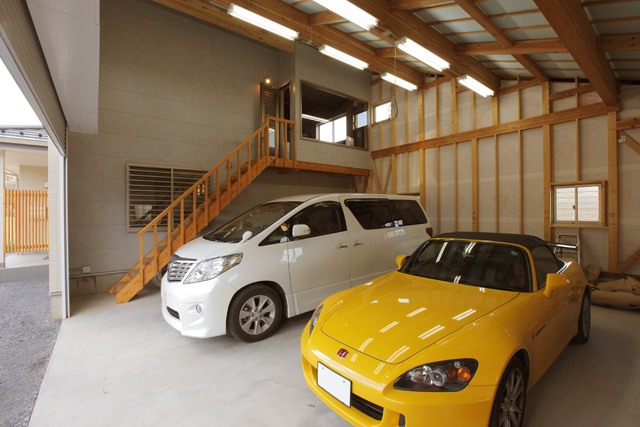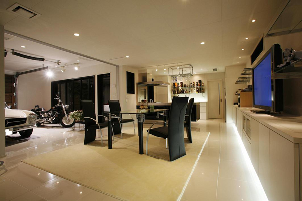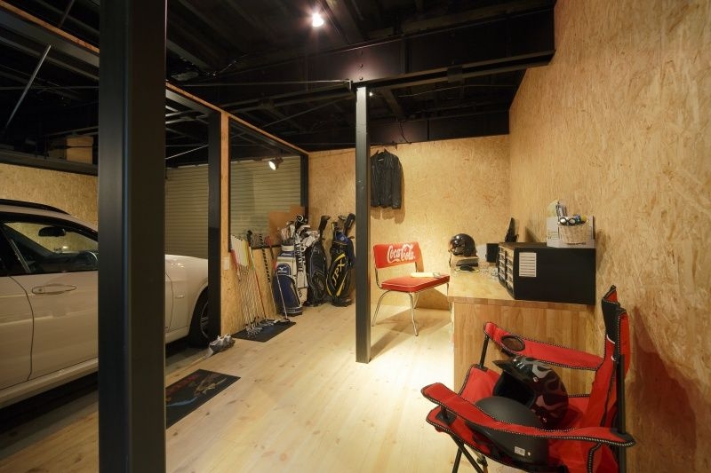 例えば車やバイクを建物の中に仕舞えるようにすることで車やバイクをインテリアの一部として、いつでも眺めることが出来るようにしたり、車やバイクをいじるスペースや、工場(こうば)として利用する目的で設置されます。