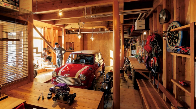 ・ビルトインガレージを秘密基地のように使い趣味部屋として楽しむ
