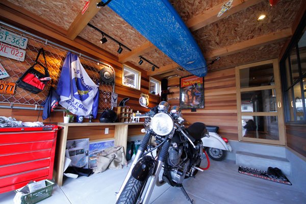 ビルトインガレージでは、車やバイクに限らず工具や自分の大好きな物をおいて自分だけのひとりの時間をたのしむことも出来ます。