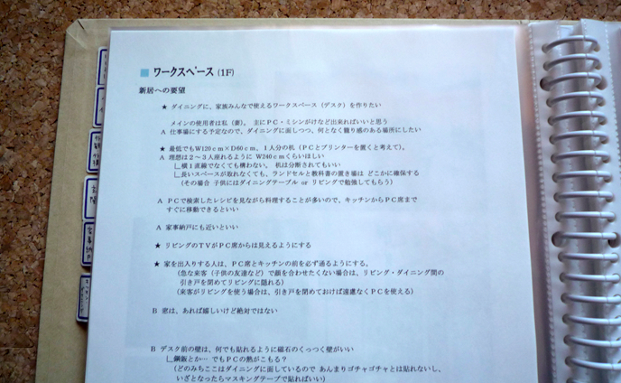さらに、たくさんの情報がこれから降り注いできますから、自分の理想の家とは何なのかが次第に分からなくなってくる恐れがあります。その場合に要望整理したノートを振り返ることで「自分の理想の家は、こういう家だったんだ」、というように原点に立ち返ることも出来ます。