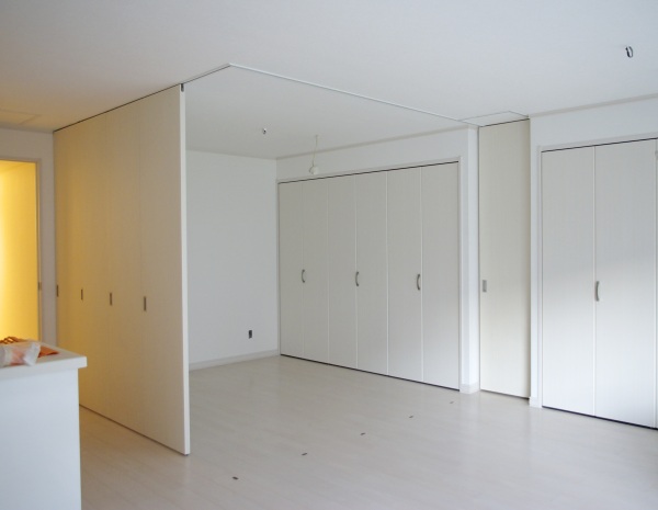 間仕切りを少なくすれば、壁の工事が減り、壁をつくる為の材料、建具、人件費が削減されます。そして、一部屋あたりの面積は、広くなり開放的でオープンな空間がうまれます。