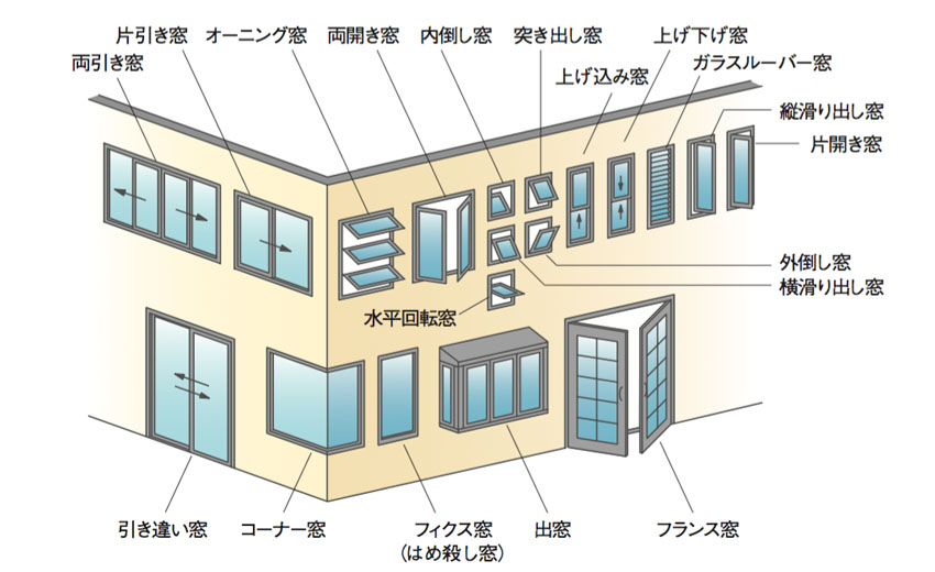 窓の設置を考える時は、どこに取りつけるのかはもちろん、どの種類の窓を採用するのか、求める機能によって種類を選ぶ必要があります。