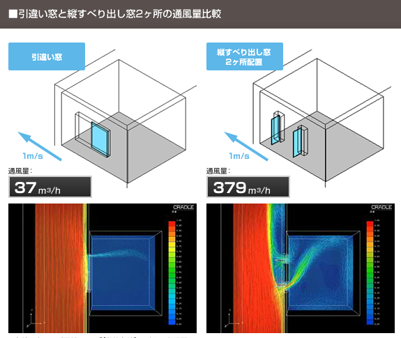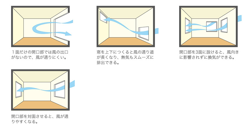 3つめの窓の基本的な役割のひとつが「通風」です。風を通したり、外の音を室内できいたりする役割です。