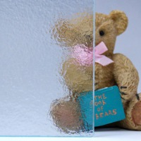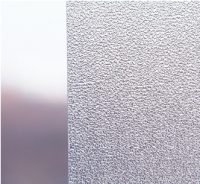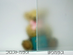 すりガラスと同様、乳白色のガラスで、片面は普通のガラスと同じような手触りで、片方はサンドブラストによる凹凸が施してあります。