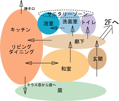 また、物事には必ずプラスの面と、マイナスの面の両面が在り、何かをとれば、何かを失うことになりますから、優先度の高い要望から順番に、各部屋を配置していきます。