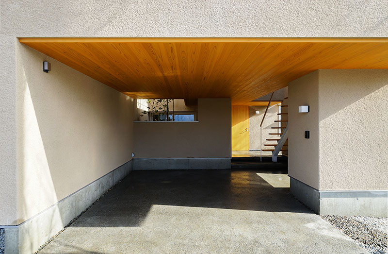 建物のピロティ空間を、ポーチとして利用する方法です。
