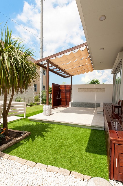 大きな屋根を設置することで車をとめることが出来ます。車から降りたとき雨に濡れず玄関に入ることが出来ます。
