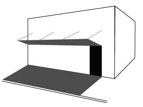 先ほどのフラットなポーチに庇がついた状態のポーチです。雨や風をしのぐことが出来ます。