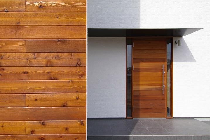 ON design partnersの「FIKA」という住宅の玄関ポーチです。庇がないため利便性に欠けがちなポーチを引き戸を使うことでうまく補っています。