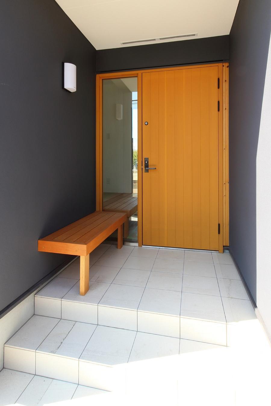 シーズ・アーキスタディオの「八王子の家」です。引き込み型のポーチとなっており傍らにはベンチが設置してあります。