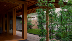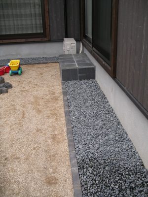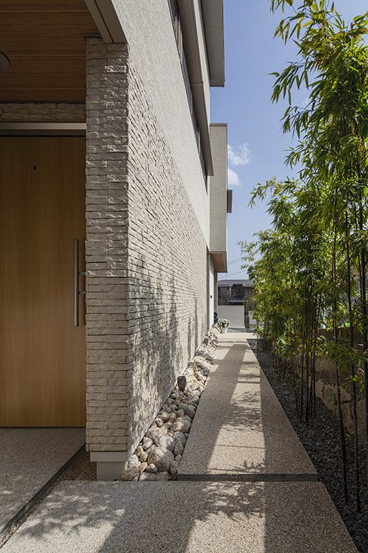 こちらは積水ハウスの洗い出し仕上げの玄関ポーチです。正面右側が道路になっているのですが、竹を目隠しに使い玄関ポーチを建物の脇に添って配置することで、プライベートな空間に入る前の気持ちの切り替えを促せるように工夫されています。