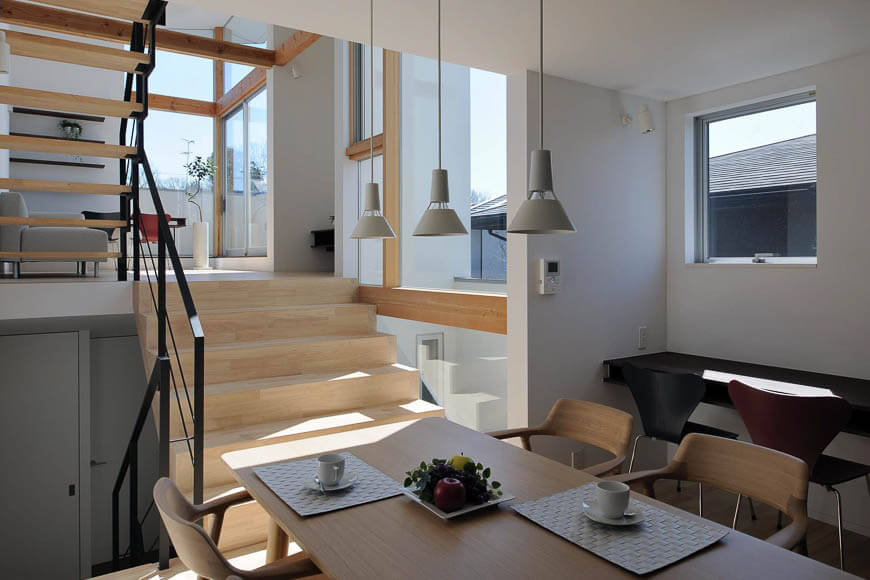 ちなみに内部空間は限られた空間を最大限に活用するためにスキップフロアになっており、広がりが感じられる居住空間になっています。