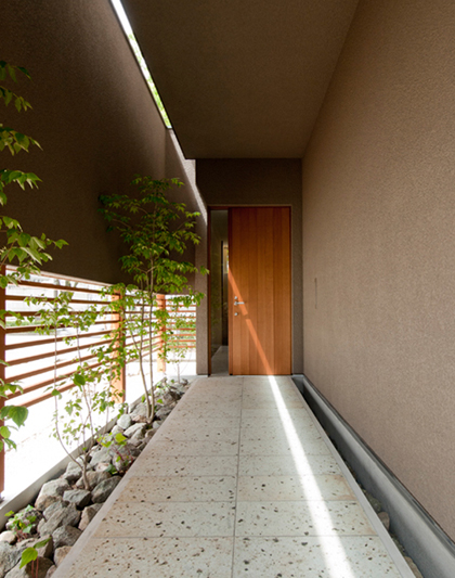 建物にそう形でアプローチ部分のエントランスをつくっています。プライベートな空間に入る気持ちの変化を促すことが出来る見事なアプローチだと思います。