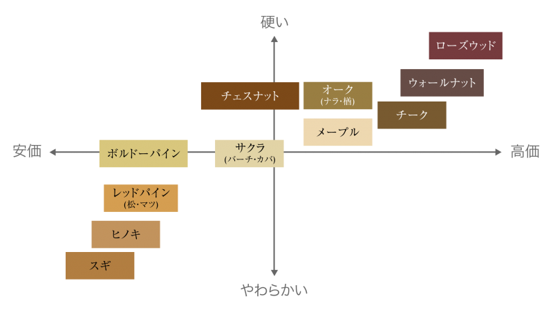 - 11 無垢材の種類別の硬さと価格の一覧表