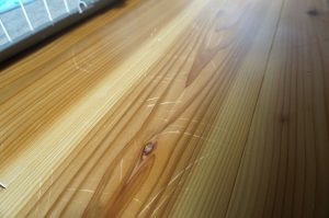 また耐水性も期待できません。水をこぼすと早い段階で拭き取らないと、木材が水を吸収してしまいますので、「水シミ」が出来やすくなります。