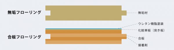 続いて「無垢フローリング」と「複合フローリング」では、具体的に何が違うのかについて話していきます。