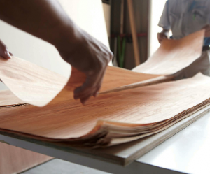 突き板とは、天然木である木材を0.2ミリから0.5ミリ程度に薄く削ぎ、それを基材に貼り合わせた表面化粧板のことを言い、それを張り付けたものを突き板フローリングと言います。