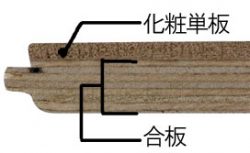 複合フローリングとは、薄くスライスした複数枚の木の板を、接着材ではりつけフローリングとして製材した床材のことです。複合フローリングの多くは集成材や合板などの基材の表面に、化粧板と呼ばれる薄い板や、木目を印刷した合成樹脂シートをはり付け加工します。