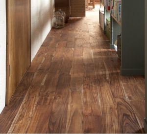 広葉樹の木材をフローリングとして使うと、広葉樹特有の独特の美しい木目により高級感を醸し出し、広い面積に使うと部屋が締まり、美しくなることが大きなメリットです。