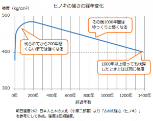 最初の1年間が最も変化が激しい期間ですが、人工乾燥の場合、方法によっては2年分に相当する含水率の低下が望めます。