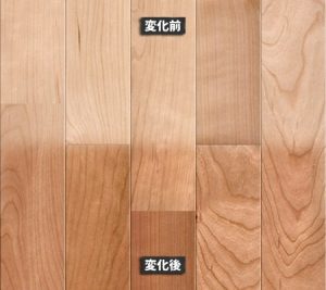 無垢フローリングで変わった変色をする樹種の例