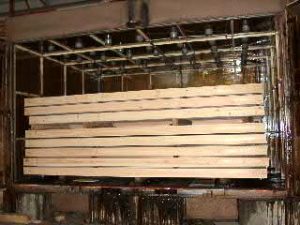 それぞれの人工乾燥の特徴を簡単に記すと、蒸気式では「熱風」により木材を乾燥させる方法をとります。一般的には2週間ほど時間をかけて熱風により乾燥を促進させます(木材により乾燥にかかる期間は異なります)。