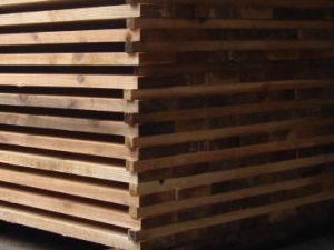 天然乾燥は、多くの場合は屋外で乾燥させますが、太陽と風が良く通る場所に「桟積み」することが非常に大事となります。なぜなら太陽熱と風が通ることにより、乾燥が促されるからです。