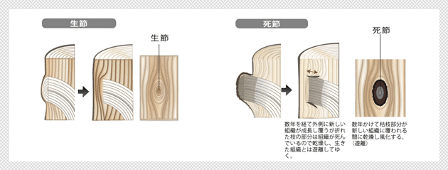 また、木材を乾燥させる過程で、「天然乾燥」の場合は、質の低い丸太や欠点の多い丸太などは、その素材の欠点がそのまま出たり、乾燥中にカビや腐朽菌におかされてしまうことで、製品化において多くの無駄が出てしまいます。