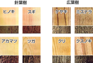 木材には大きくざっくりと分けると「針葉樹」と「広葉樹」があります。