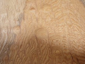 タモは紫外線などによる色調の経年変化が比較的少ない樹種です。タモは経年変化で少しずつ黄褐色に濃くなっていき、杢目がハッキリとしてきます。
