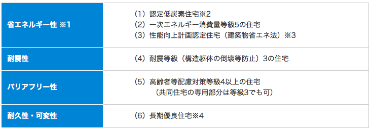 ・住宅床面積:戸建て70㎡以上、共同住宅30㎡以上。