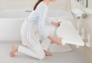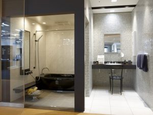 システムバスのいいところは、建材メーカーのショールームに行くと実物が展示してあるので、実際に使用しているシーンを想定して、使い勝手を確かめることが出来る点にもあります。