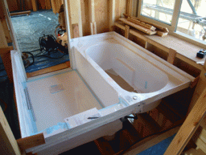 システムバスは、基本的に、現場では、工場で生産された部材(パーツ)を組み立てる作業が主だって行なわれるため、他の種類の浴室と比べると工期も短くなり、短縮することが出来ます。